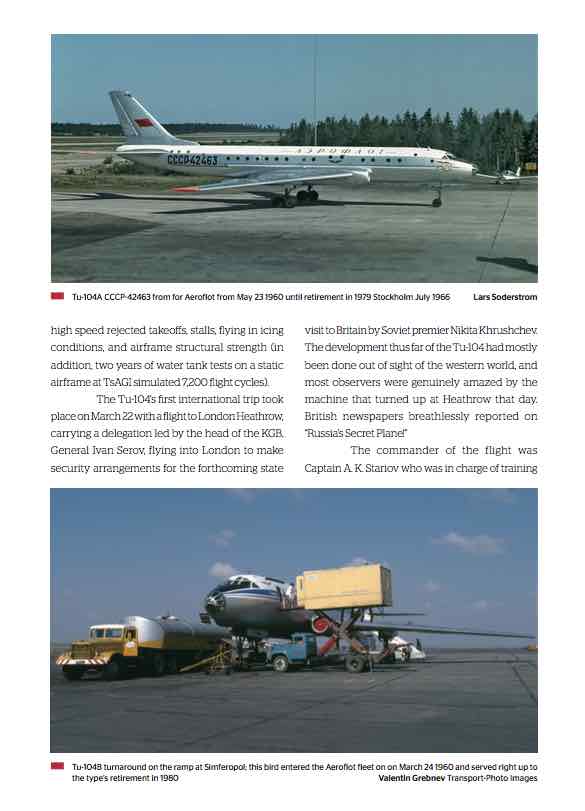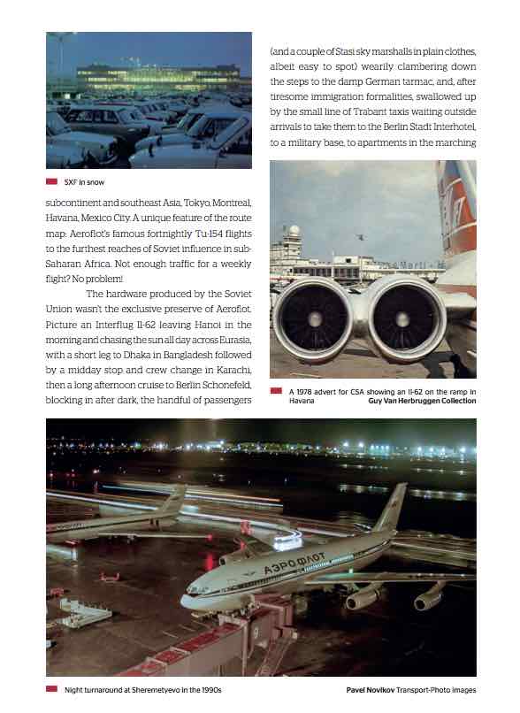 Jetliners Of The Red Star goes behind the Iron Curtain to tell the story of the jet airliners of the Soviet Union.The Tu-104, Tu-124, Tu-134, supersonic Tu-144, Tu-154, Tu-204, the Ilyushin Il-62, Il-86 and Il-96, and Yakovlev Yak-40 and Yak-42 get a chapter each, lavishly illustrated with rare photos from the past and present. An introductory essay details the history of Aeroflot and the Soviet aerospace establishment. Bonus feature: Aeroflot’s epic timetable from winter 1985/1986 reproduced in full. Experience the tragedy and triumph, crushing defeats and stratospheric successes in the parallel world of the airline scene of the Cold War.
